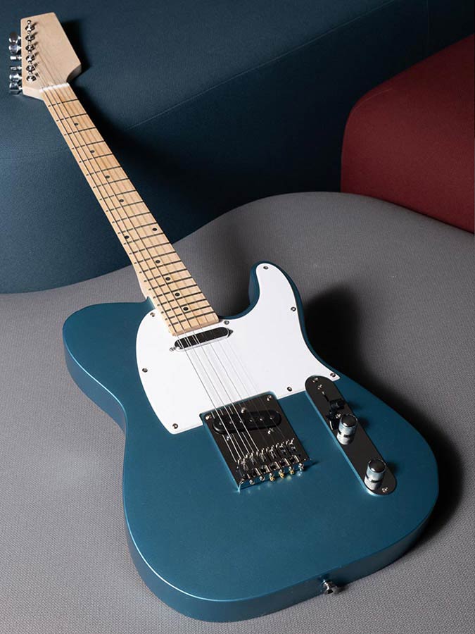 The Ocean Turquoise Metallic colour was used by Ford on its Mustang model in 1962. It also made an appearance on the Mercury #M1731 car. it was used as a Custom Colour by Fender in the 60s on both Telecasters, Stratocasters and offset models like the Jaguar and Jazzmaster. It can be described as a metallic bluish colour with greenish touches. Over time the green will be accentuated due to the yellowing of nitrocellulose. It is often combined with tortoise pickups and rosewood fingerboards. A beautiful color that leaves no-one indifferent.