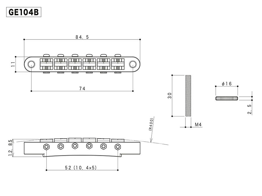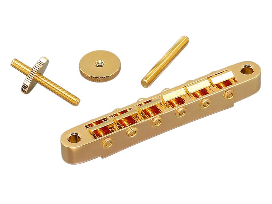 GE103B-T Gitarren Brücke Tune-o-Matic, 11mm Saddle Travel, Vintage Bolzen, Gold