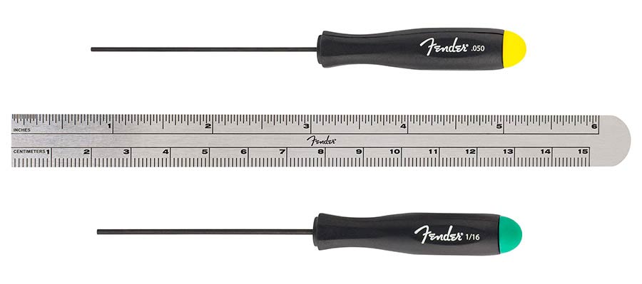 A simple, essential setup combo for keeping your guitar in top shape! Includes a 3/16” hex driver, 1/8” hex driver, and a durable steel ruler. The drivers are designed for quick, precise bridge and saddle adjustments, while the versatile ruler is ideal for checking string height, action, and other essential measurements. Compact and easy to keep on hand, this set helps ensure your guitar is always playing at its best.
