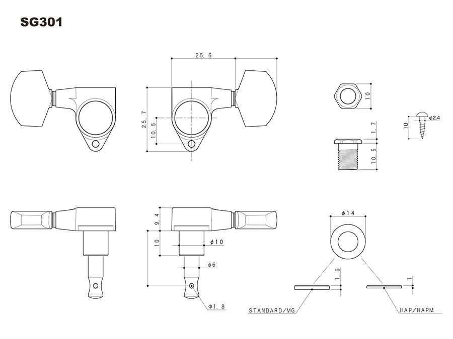 SG301 machine heads with Magnum Lock Trad and 04 buttons, 3L3R, black