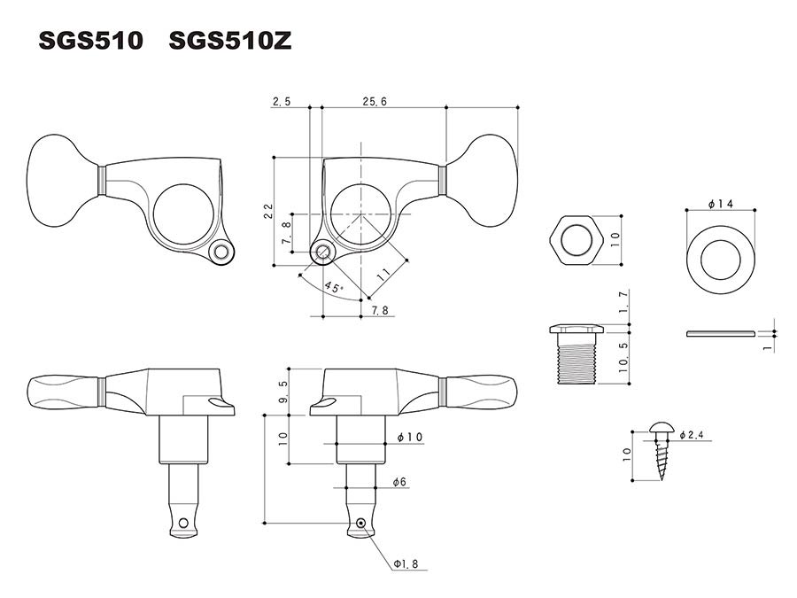 SGS510Z machine heads with S5 buttons, 3L3R, cosmo black