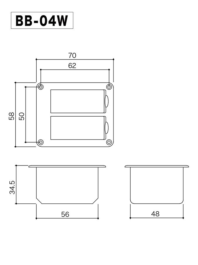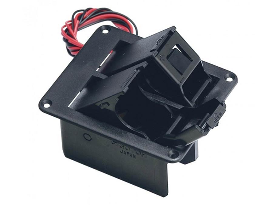 The Gotoh BB-04W double battery box fits two 9V batteries, when changing the battery, the holder tilts the battery up, out of the guitar giving good access to the battery and allowing quick and easy changes. It comes with built in connection terminals and 1 set of lead wires per battery allows for 18V series or 9V parallel wiring, or even routing the batteries to separate circuits (e.g. 1 for the pickups, 1 for a piezo pre-amp). The battery box mounts to the guitar body with screws (included).
