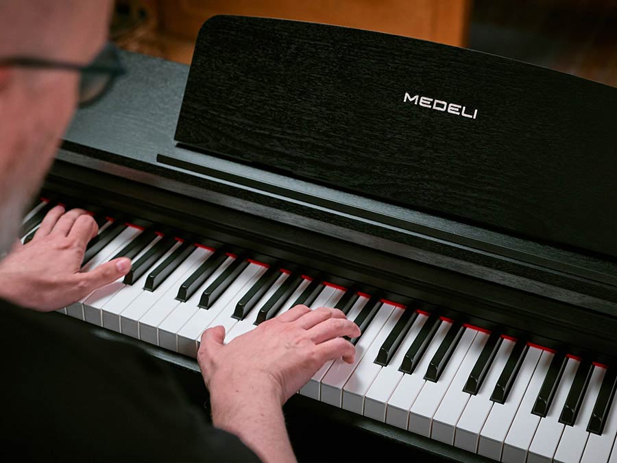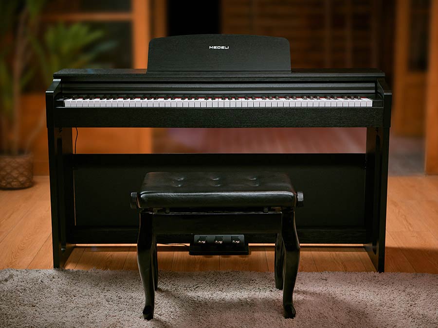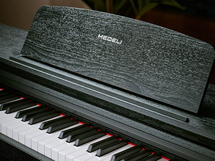 Presentamos el Medeli UP82, un distinguido piano digital para principiantes que avanza el legado del UP81 con mejoras significativas tanto en la estética como en la salida de audio. Este modelo luce un acabado mejorado, que garantiza no sólo un aspecto liso y elegante, sino también un toque de refinada artesanía que eleva su presencia en cualquier entorno.