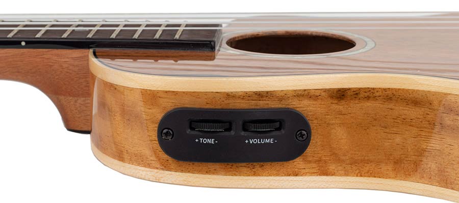 Equipped with a built-in pickup and volume and tone controls, the ukulele allows you to easily adjust your sound, whether performing live or recording in the studio.