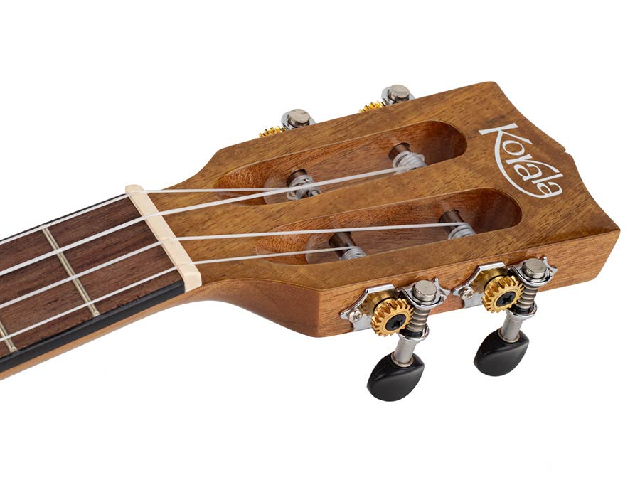 Discover the exquisite Korala Thineline Concert Ukulele, a stunning instrument that combines exceptional craftsmanship with modern features. This ukulele is crafted from mango wood, featuring a mango top and mango back and sides, delivering a warm, tropical sound with rich overtones and a beautiful, unique grain pattern. The arched back design enhances the resonance, producing a fuller, deeper tone that stands out. The elegant maple binding adds a refined touch, accentuating the natural beauty of the mango wood and providing a sleek finish.