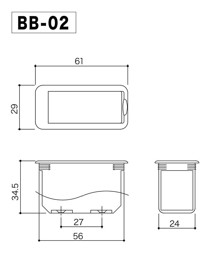 Plastic battery compartment, 'Snap-In' style for one 9V battery.