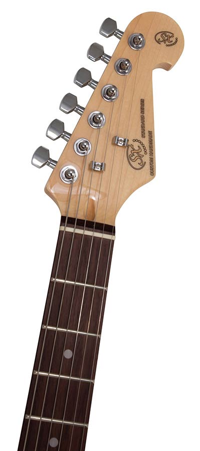 The SX SE1HSS-SK guitar pack offers unbeatable value, providing everything you need to get started. It includes a high-quality basswood guitar with a contoured body for comfort and versatile HSS pickups for a wide range of sounds. The vintage fulcrum bridge and adjustable maple neck ensure great playability. The package also features a 10-watt amp with a headphone jack, guitar bag, strap, clip-on tuner and 10' cable. Perfect for rock, jazz, blues, and more, it's an ideal set for beginners and experienced players alike!