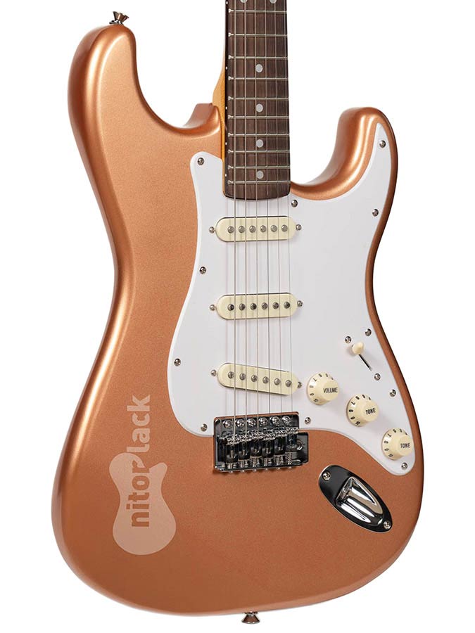 If you’d like to paint your guitar a perfect finish and you have painting equipment (spray gun and compressor) available, the best choice is nitrocellulose varnish in a can. You’ll get a higher performance by a lower price and with painting equipment the final result will be professional with less effort. It is recommended to dilute the product with our solvent to adjust the viscosity. For the application to be perfect we have two types of solvents: the usual solvent used is Solvent Medium (art. nr. 48138 / N540423104), but for ambient conditions of humidity and temperature more extreme we can use Solvent Retard (art. nr. 48139 / N540425104) to avoid bubbling and blooming in the finish.