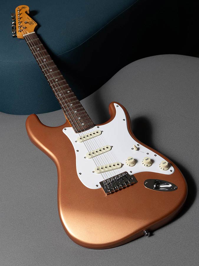 This Copper Metallic colour was rarely used by Fender through the fifties: it appeared for the first time on the ’52 Esquire and Telecaster. When the custom colours were standardised in 1960 the copper finish was eliminated from the chart.