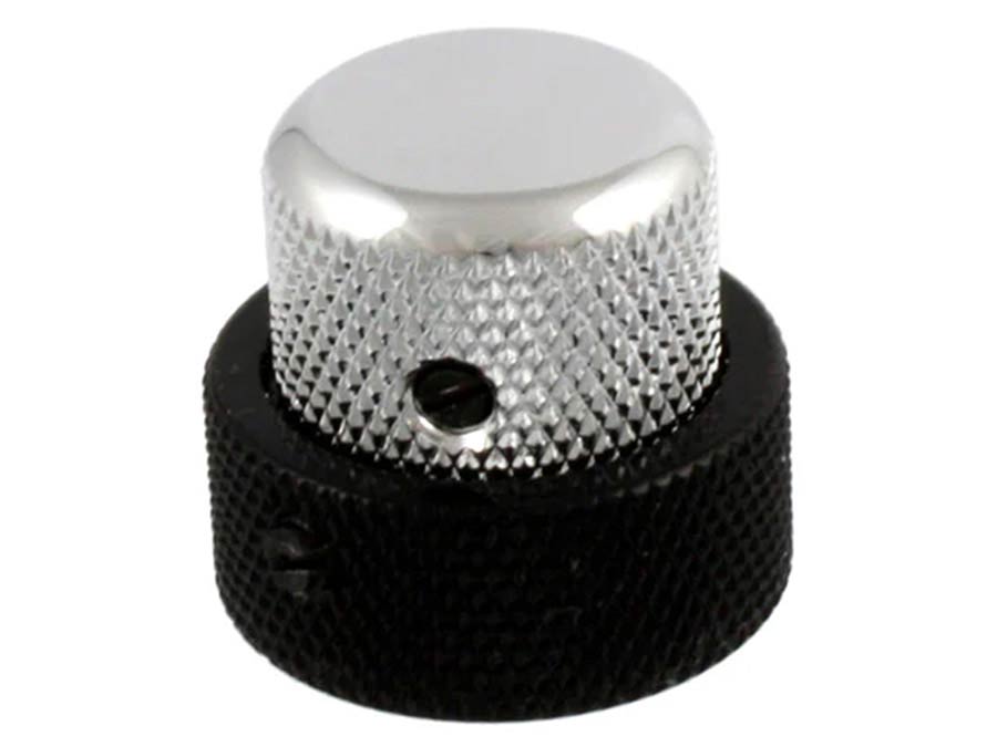concentric stacked knob, vintage style with set screws, chrome top, black bottom, fits USA pots