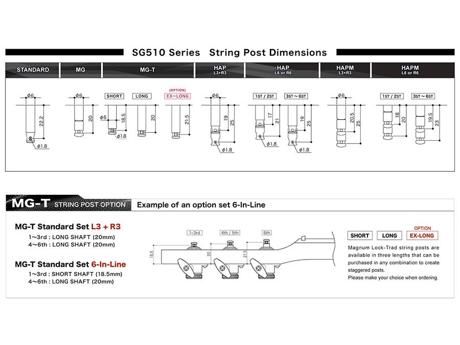 SGS510Z machine heads with S5 buttons, 3L3R, chrome