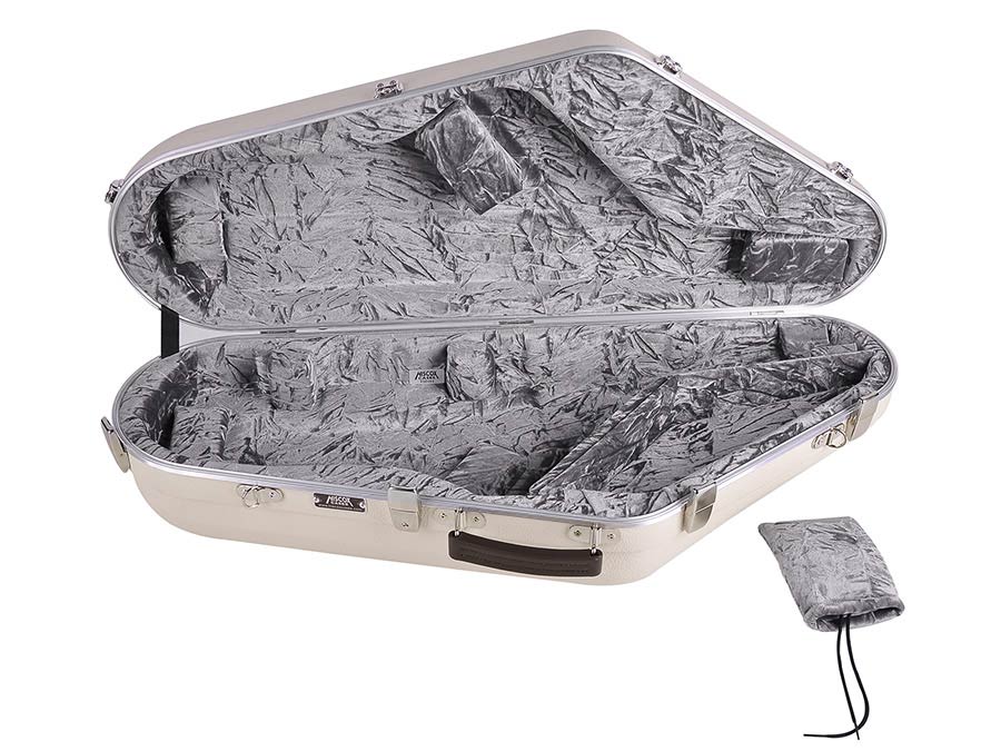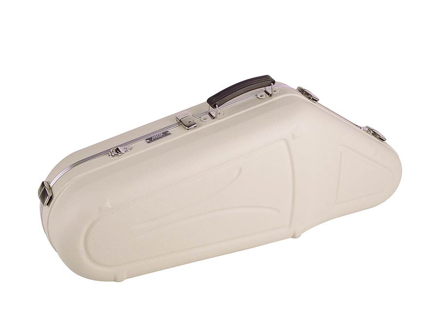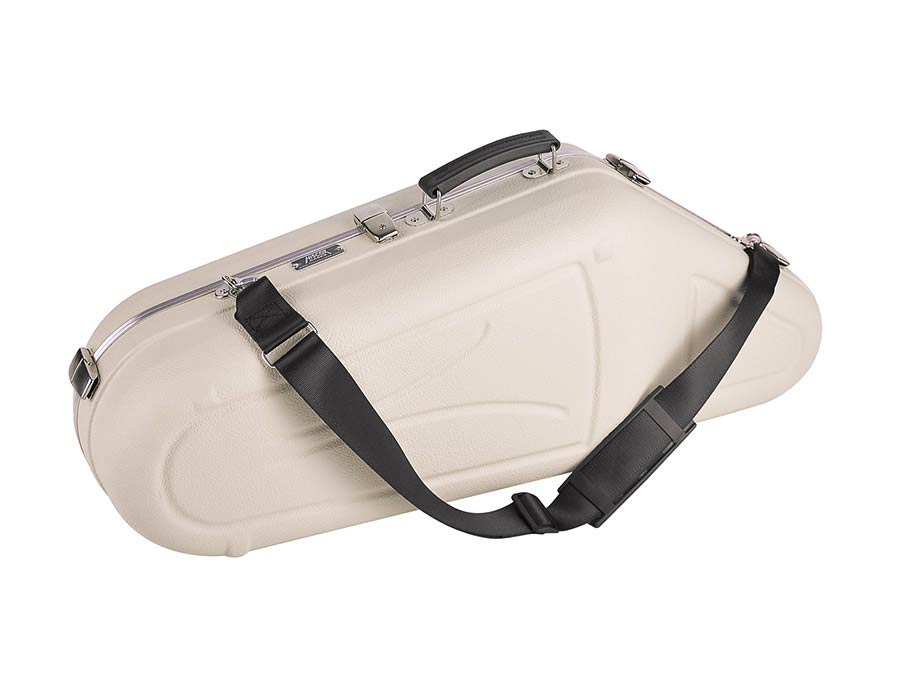 tenor saxophone case, ABS and aluminum, semi-shaped, with carrying strap, ivory