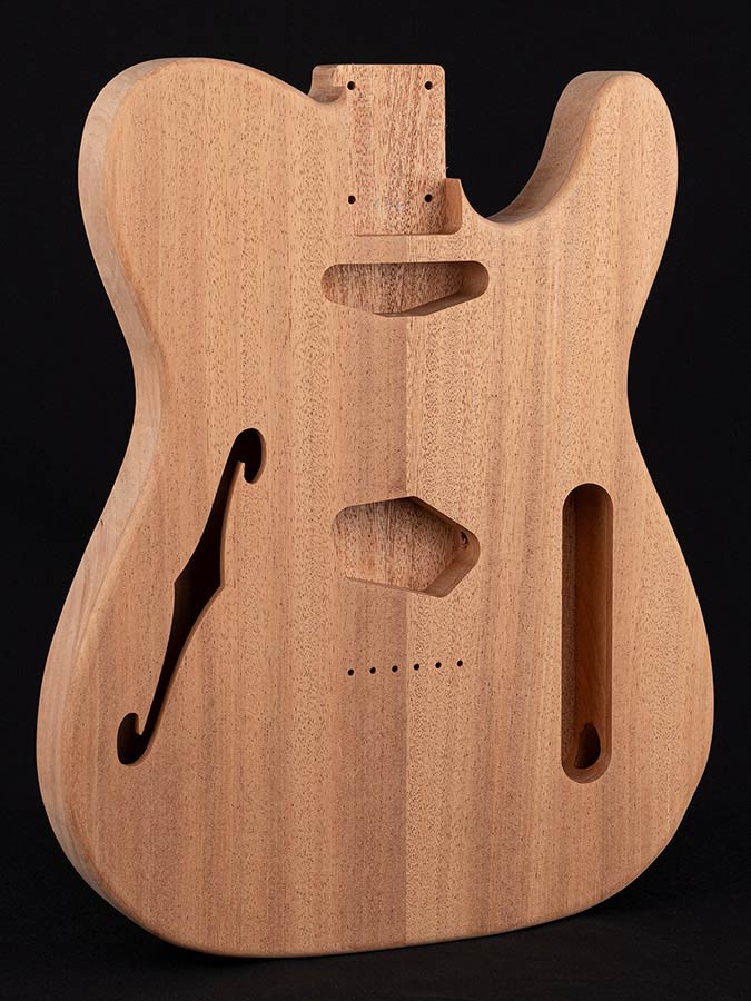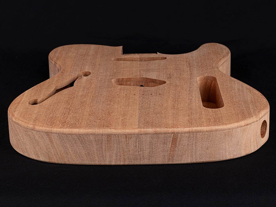 This high quality thinline TE-style body, based on vintage specifications, was manufactured in Germany. Mahogany is regularly used for guitar necks and bodies. Fender used mahogany as the preferred choice for thinline TE guitars from 1968 up to 1972. Apart from the historic background, this Khaya body offers a nice tonal and visual alternative to more conventional TE bodies.