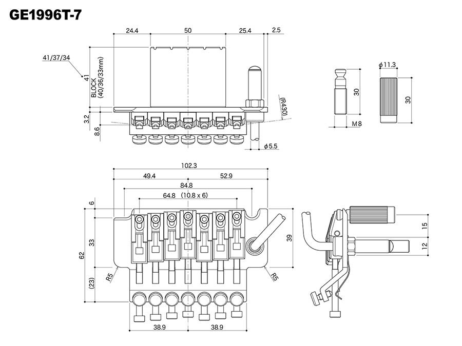 GTH12834 |Gotoh GE1996T-7 7-string locking tremolo (36mm block)