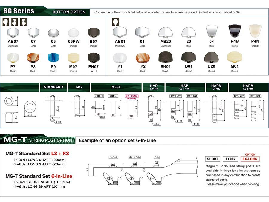 SG381 machine heads with 05PW buttons, 6R, black