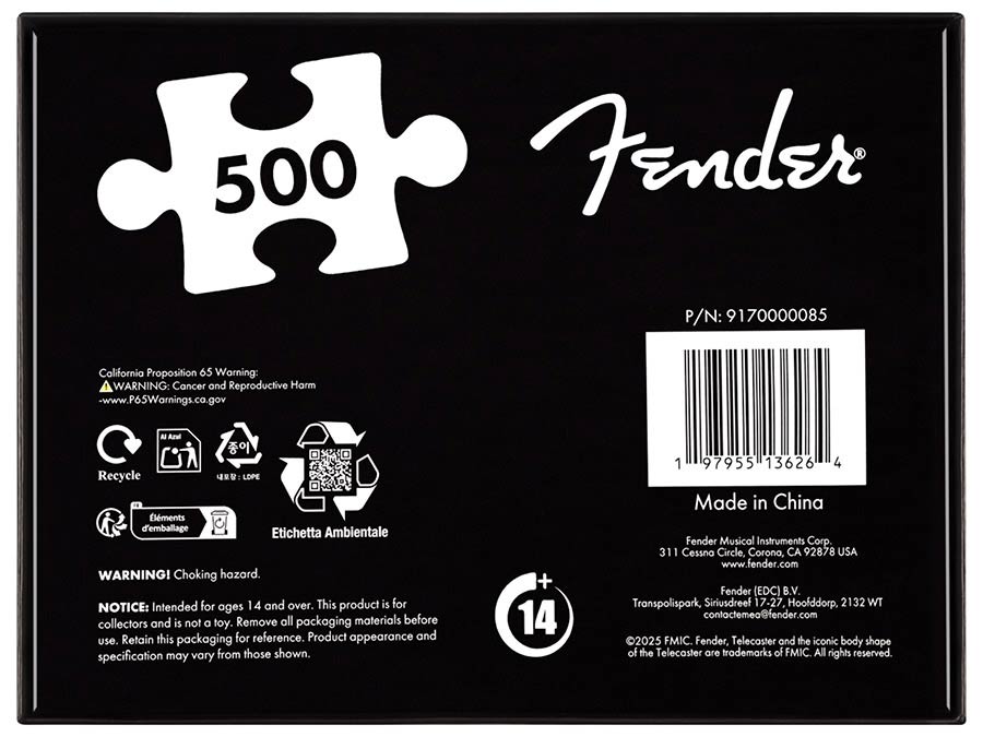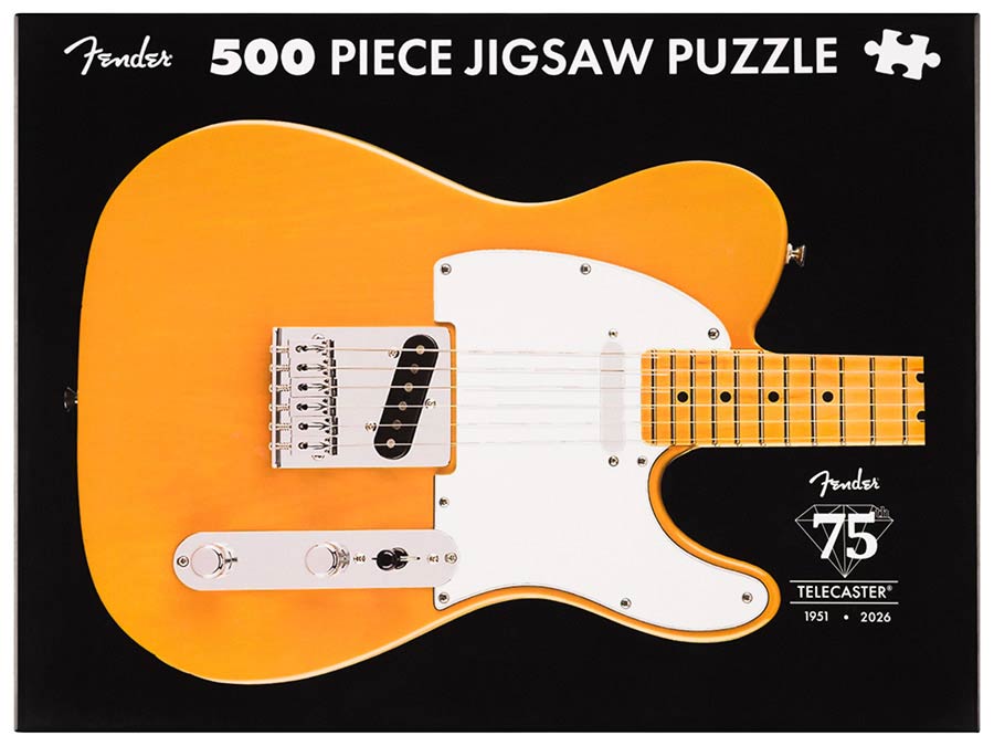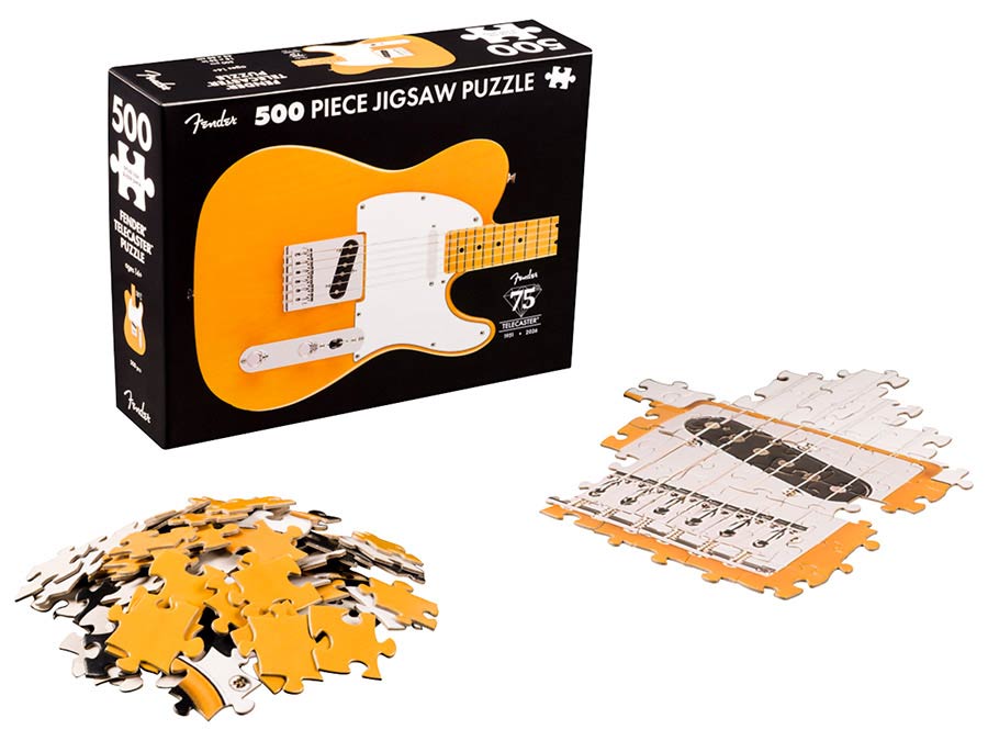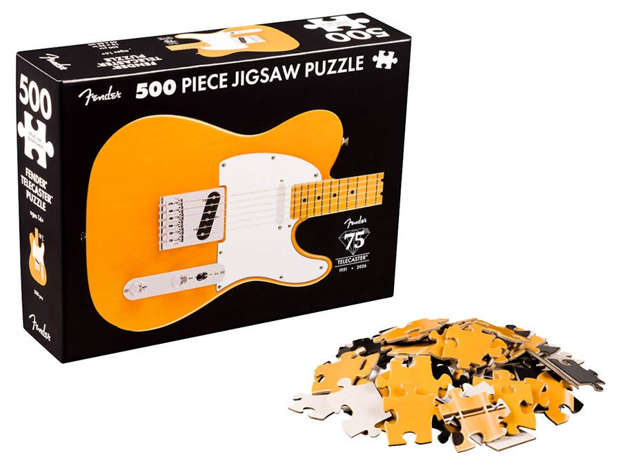Celebrate 75 years of the guitar that started it all — the first mass-produced solid-body electric that forever changed the sound of music. The Fender® 75th Anniversary Telecaster™ Puzzle lets you piece together a legend, featuring the iconic Butterscotch Blonde Telecaster design and commemorative anniversary logo. With 500 glossy, precision-cut pieces, it’s the perfect blend of nostalgia, craftsmanship, and fun for players and puzzle lovers alike.