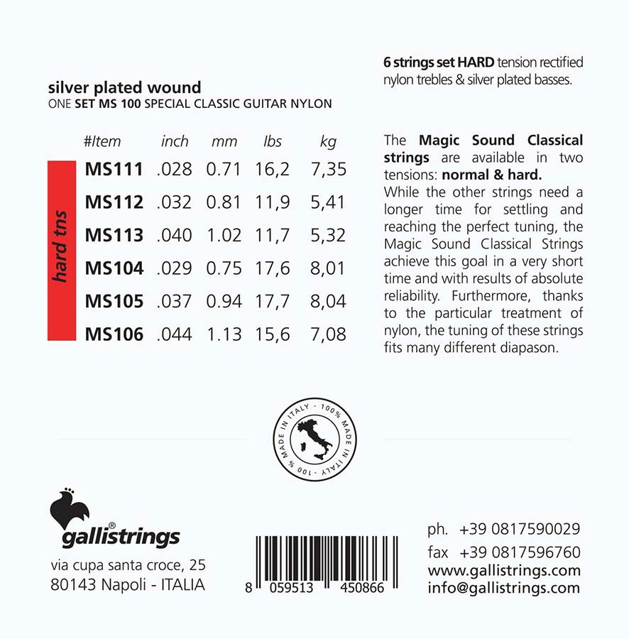 Multi-wire nylon covered with silver plated for the low notes. Nylon for the trebles.