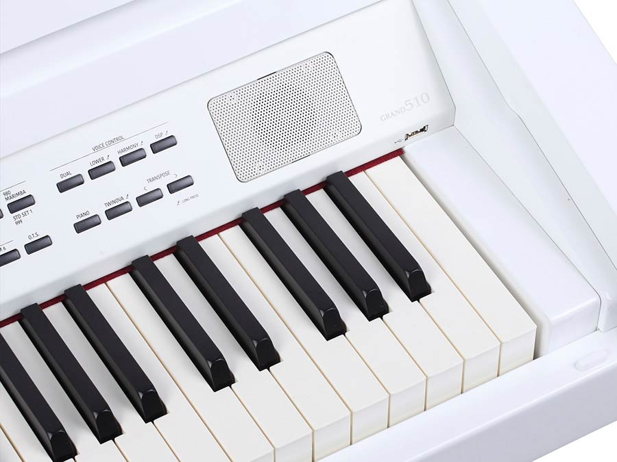 De Medeli GRAND510, een fantastische piano met de uitstraling van een echte vleugel. Het is echter niet alleen het uiterlijk dat indruk maakt. Deze vleugel is voorzien van het hoogwaardige K8 klavier van Medeli en heeft hierdoor de aanslag en het gevoel van een echte vleugel. Drie sensoren zorgen ervoor dat de aanslag (en ook het loslaten) van de toets op de juiste wijze word geregistreerd en weergegeven. Door de 2 x 60 watt versterker en speakers klinkt deze piano erg goed.