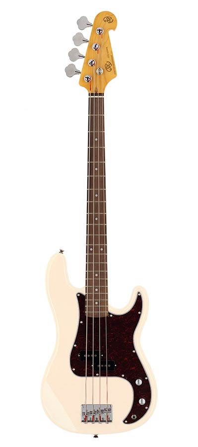 62 P-style elektrische basgitaar, split single coil pickup, tas, wit