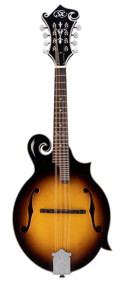 This excellent quality F Hole style Mandolin has a solid spruce carved archtop, The arched back and sides are of solid Solid Oukume, Arched Back, a rosewood fingerboard with 29 frets. The fingerboard markers are Mother of Pearl inlaid, It is rare to find such wood and finish specifications at this price and they make this a very playable instrument with a lovely warm tone. This model has a glossy finishing in Vintage Sunburst.