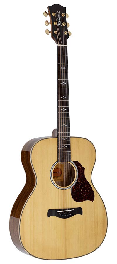 auditorium guitar, solid spruce top, mahogany body, flamed maple & abalone, natural gloss