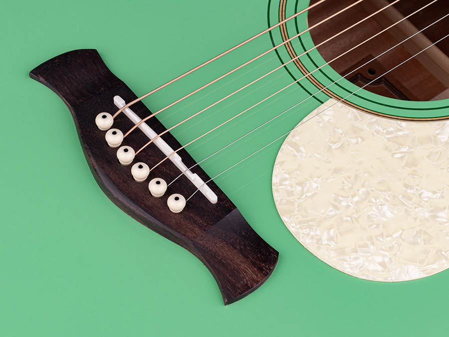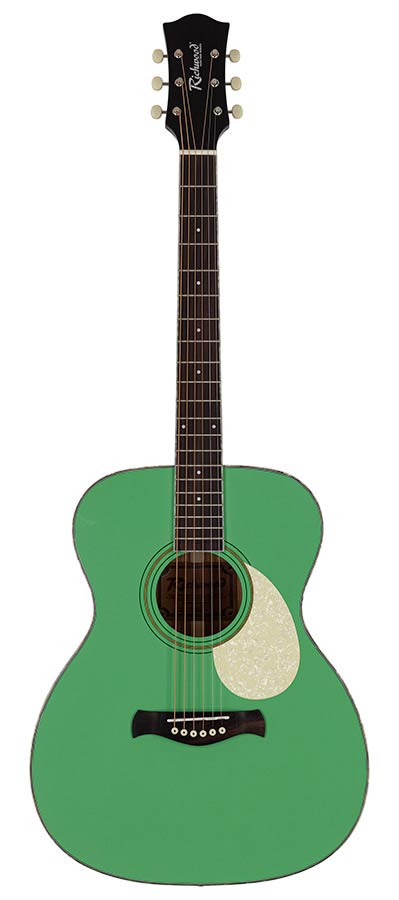 auditorium guitar with solid spruce top, mint green
