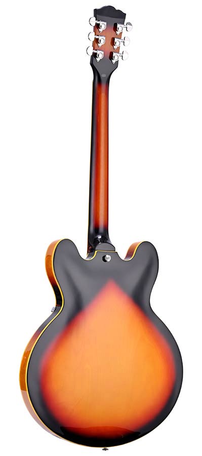 archtop guitar with maple body and dot inlay, vintage sunburst
