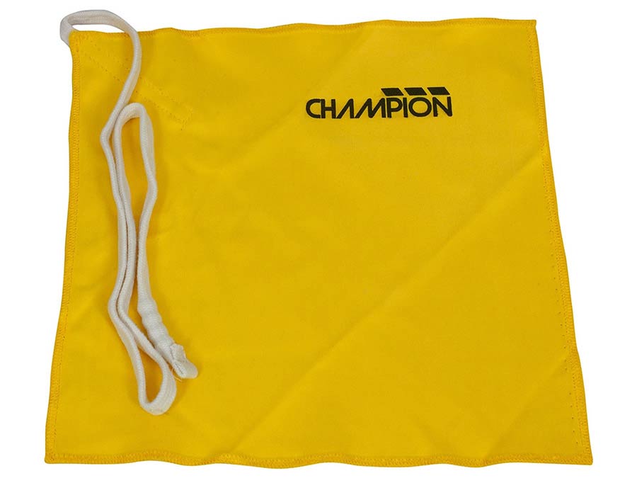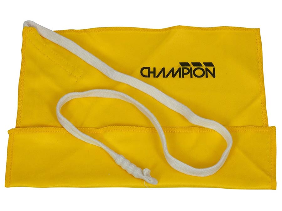 Yellow microfibre cloth 197 x 197mm, pull-through string with weighted end, 500mm length