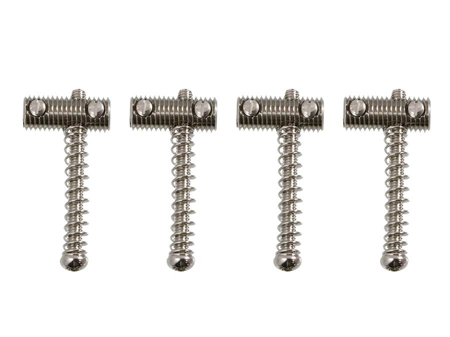 Bass bridge barrel saddles vintage style, set of 4, with springs and screws, nickel.