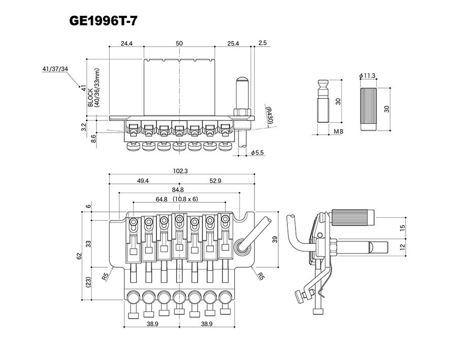 GE1996T-7 7-string locking tremolo (36mm block), chrome