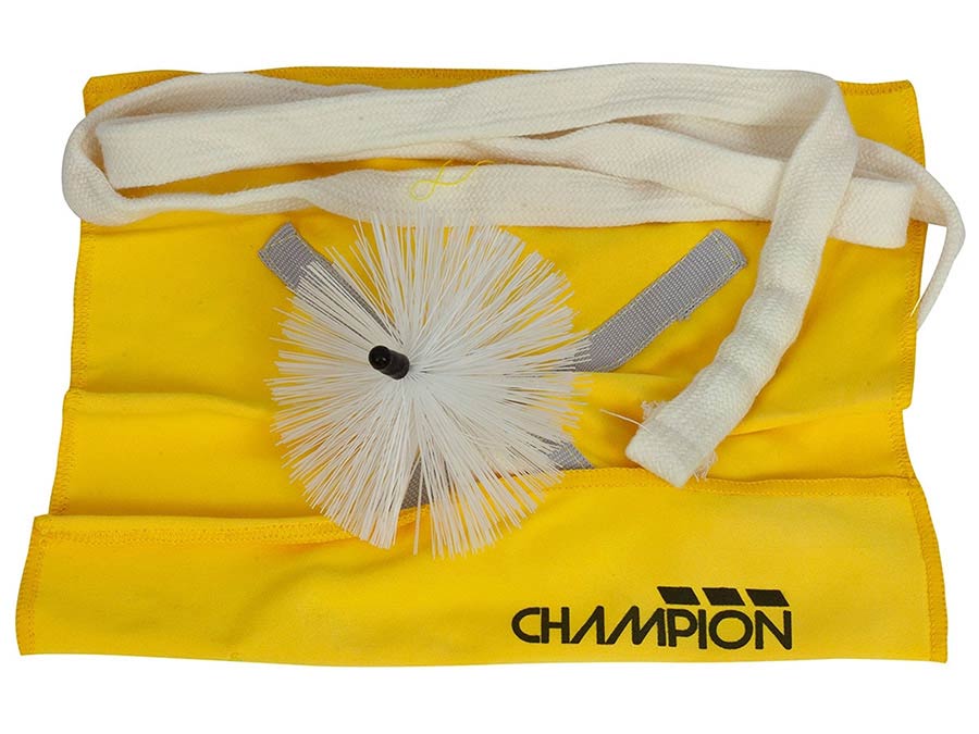 Yellow microfibre cloth 195 x 205mm, pull-through string with weighted end 1070mm length, white synthetic brush, diameter 70mm