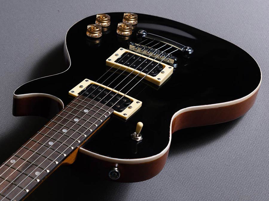 This is a high intensity black nitrocellulose lacquer finish, based on the lacquer as used by Gibson. Used mainly in models like the Les Paul Custom “Black Beauty”, this deep black shade combined with gold hardware brings a unique elegance to the guitar.