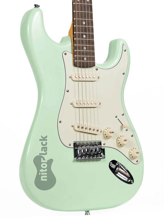 After great work and exhaustive study by our laboratory and technical department, we have created colours for guitars to faithfully recreate the tones of vintage Fender and Gibson guitars to paint electric guitars. They have been based on original samples from the ‘50s and ‘60s. However, keep in mind that vintage guitar colours may have changed a lot over the years due to the aging of nitrocellulose lacquer and changes in the brands’ own colours. Therefore two guitars finished in 1960 with Fender card colours can look different between them or with respect to a more current guitar today.